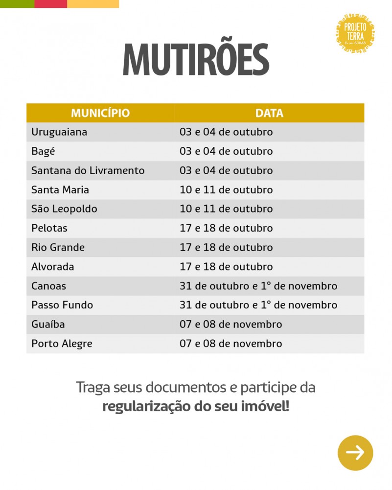 O Termo de Cooperação uniu os seguintes parceiros: Secretaria de Habitação e Regularização Fundiária (Sehab); Procuradoria-Geral do Estado (PGE-RS); Defensoria Pública RS; Colégio Notarial do Brasil, Seção RS; Colégio Registral do RS e o Instituto de Registro Imobiliário do RS. Também se somam ao trabalho o Ministério Público RS, a Defensoria Pública RS e o Comando Militar do Sul no auxílio aos mutirões.